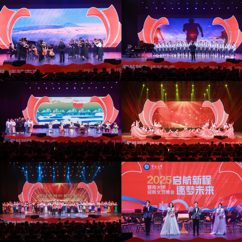 9月28日,由暨南大学党委学生工作部、党委研究生工作部、校团委主办的“启航新程 逐梦未来”2025年暨南大学迎新文艺晚会,在石牌校区礼堂成功举办,学校党委书记孙彧老师,副校长顾乃华老师等学校领导及各机关部处和各学院,近2000名师生参加。